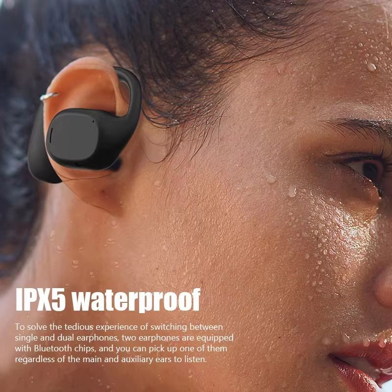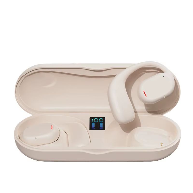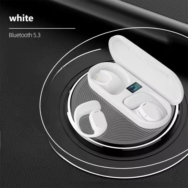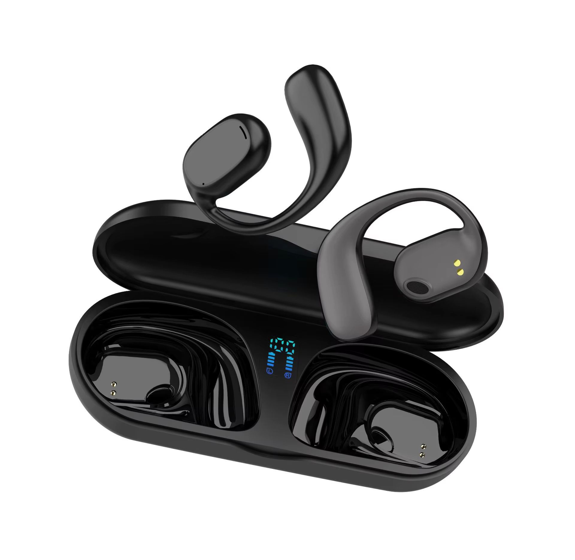 Fones de ouvido sem fio esportivos com monitor de fonte de energia da bateria com números, fones de ouvido abertos, fones de ouvido de condução aérea com suporte para o ouvido