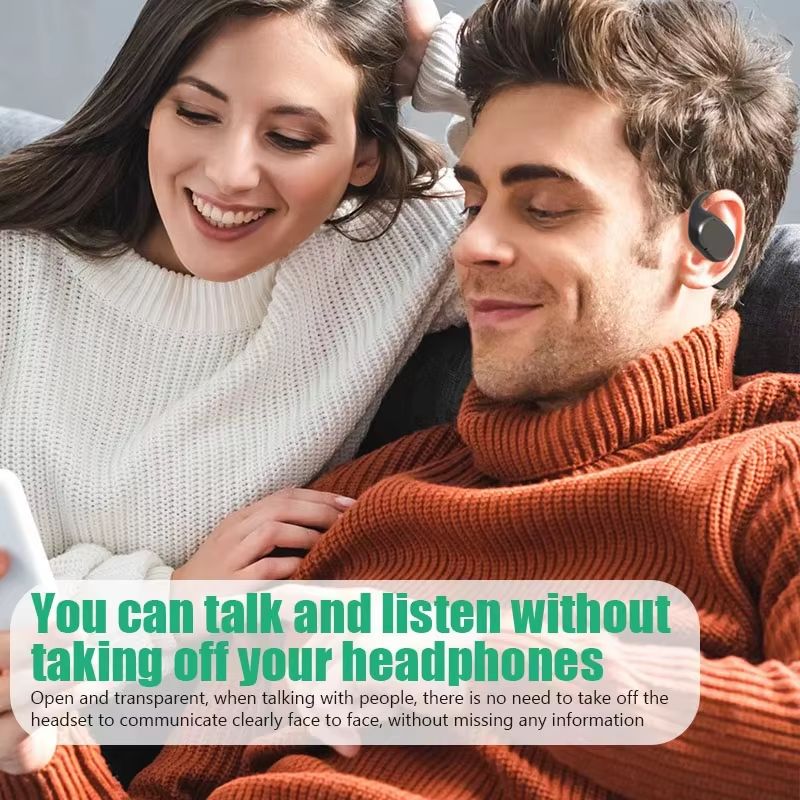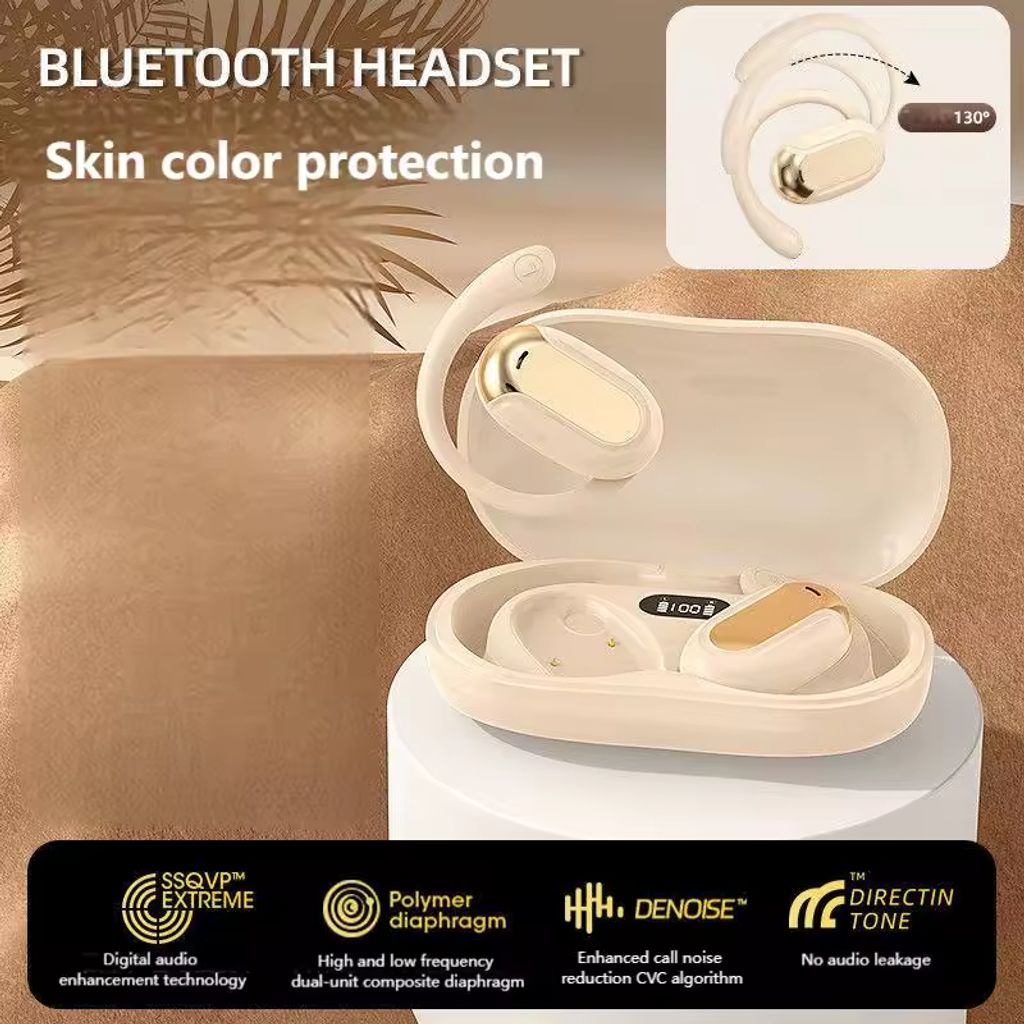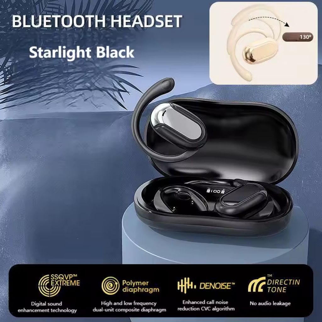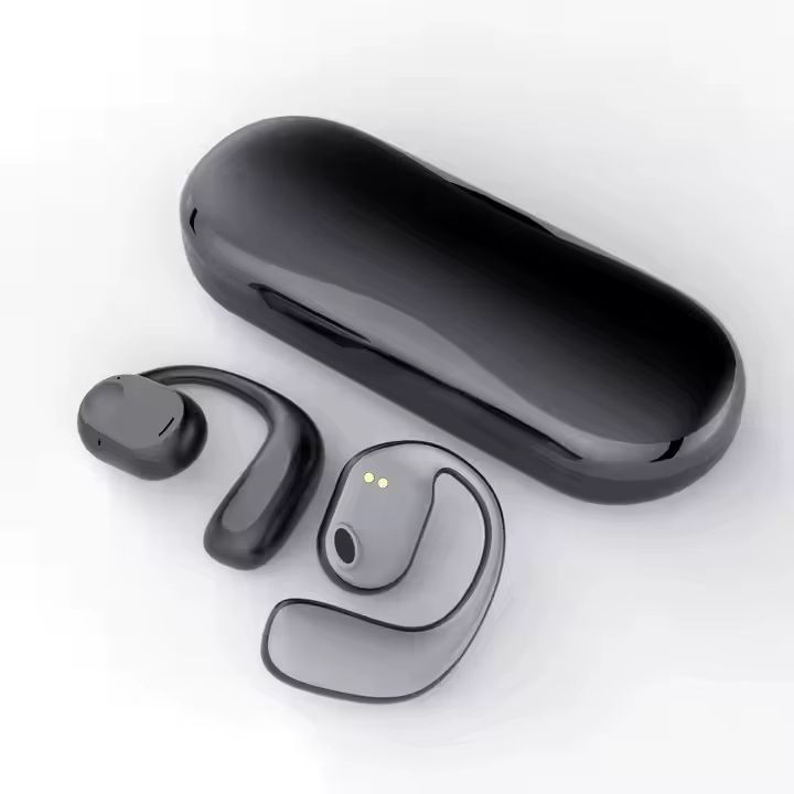 Fones de ouvido sem fio esportivos com monitor de fonte de energia da bateria com números, fones de ouvido abertos, fones de ouvido de condução aérea com suporte para o ouvido