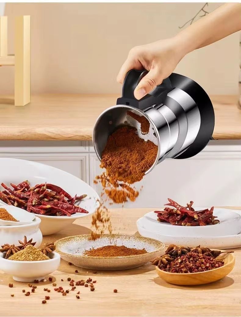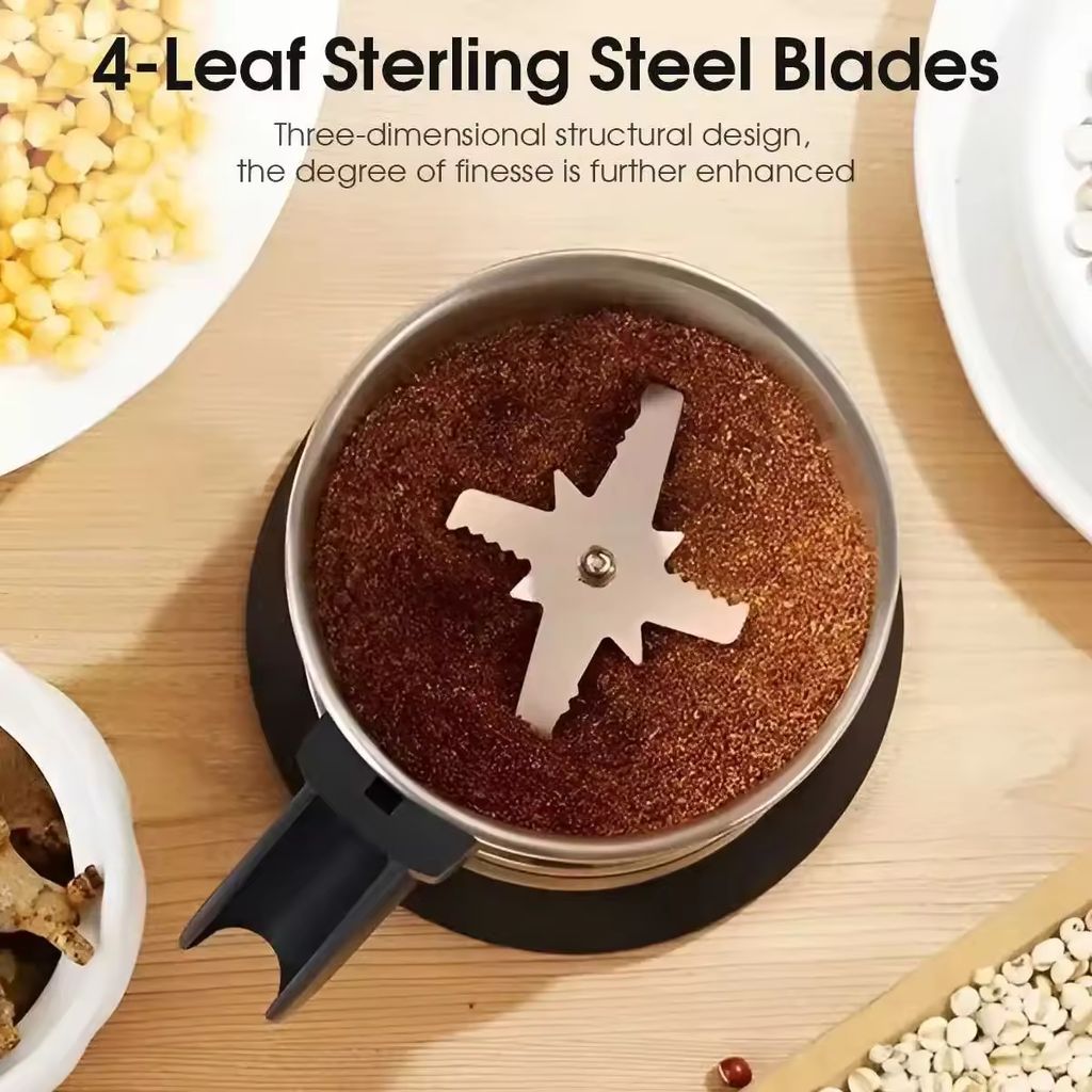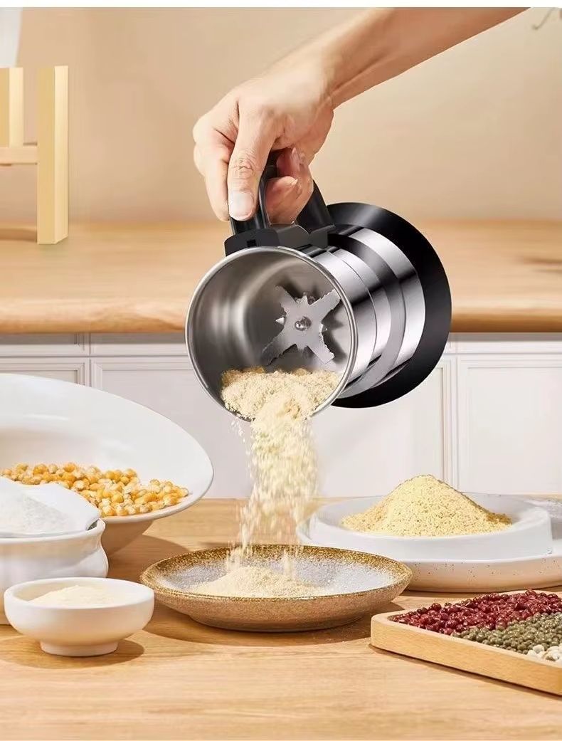 Máquina de Moer Elétrica Automática em Aço Inoxidável - Mixer Pequeno de Cozinha Multifuncional para Café, Especiarias e Cereais | Moagem em Pó Ultrafino