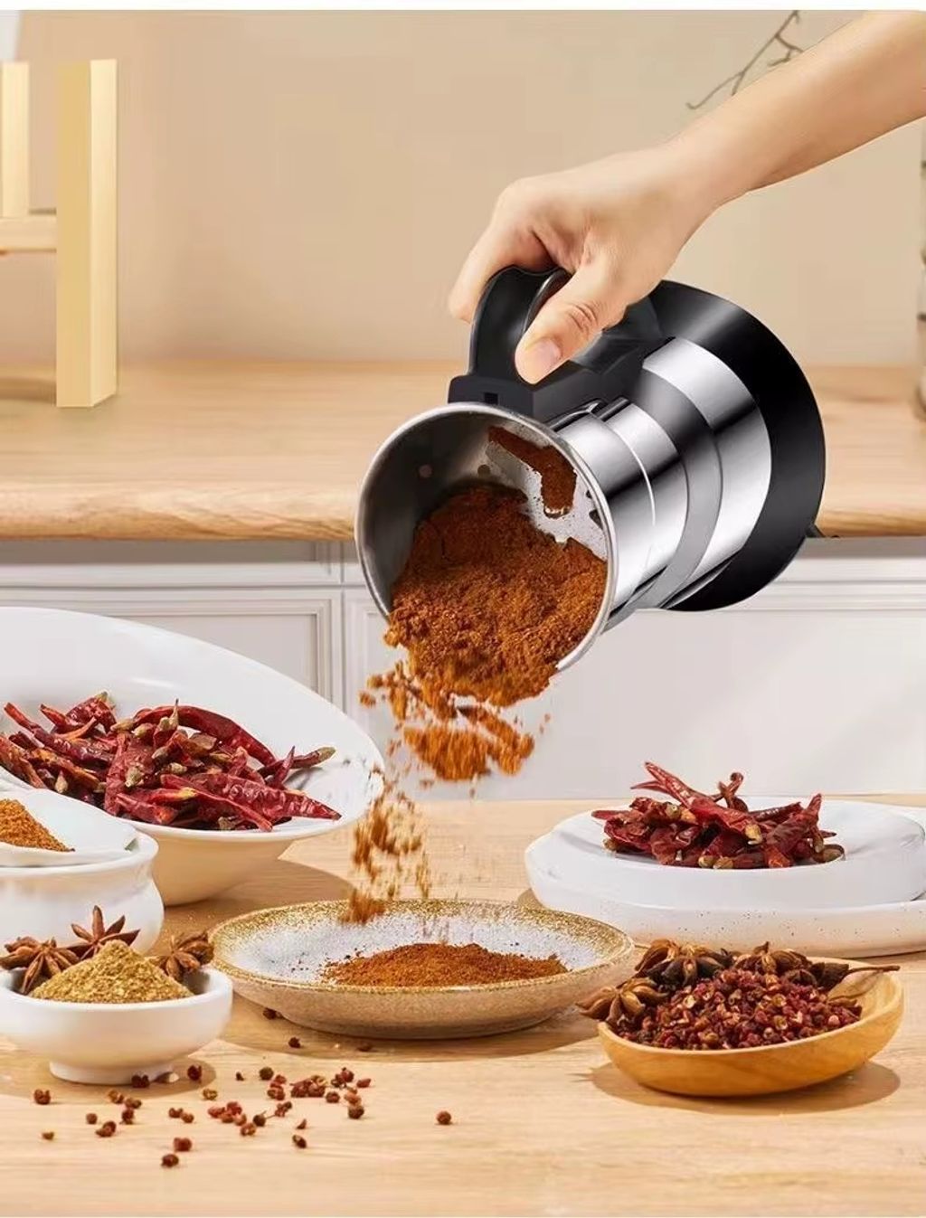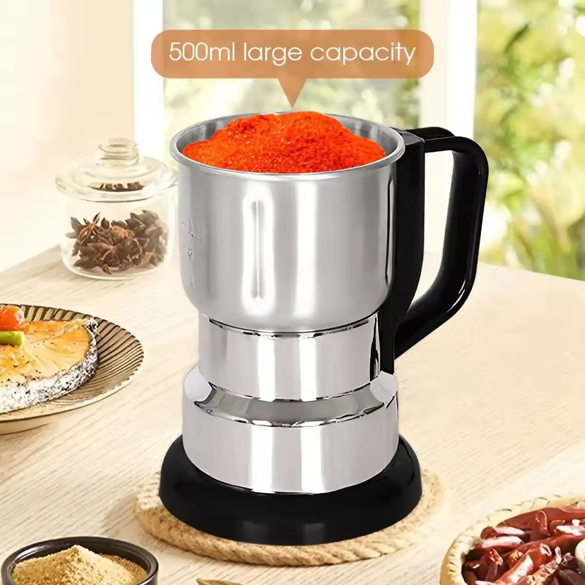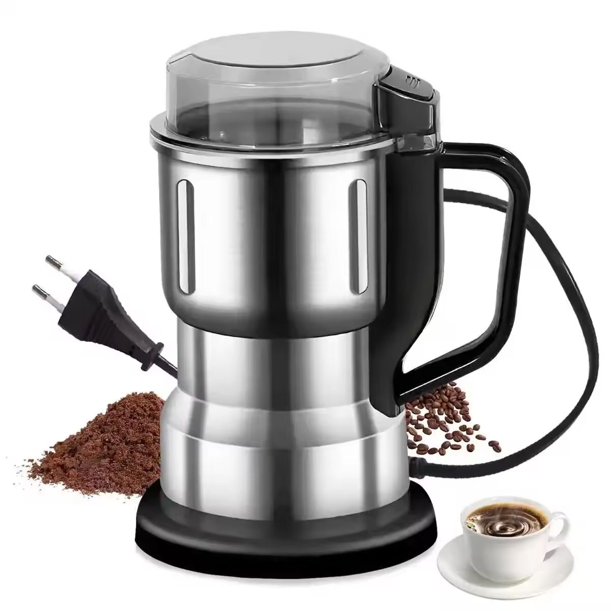 Máquina de Moer Elétrica Automática em Aço Inoxidável - Mixer Pequeno de Cozinha Multifuncional para Café, Especiarias e Cereais | Moagem em Pó Ultrafino