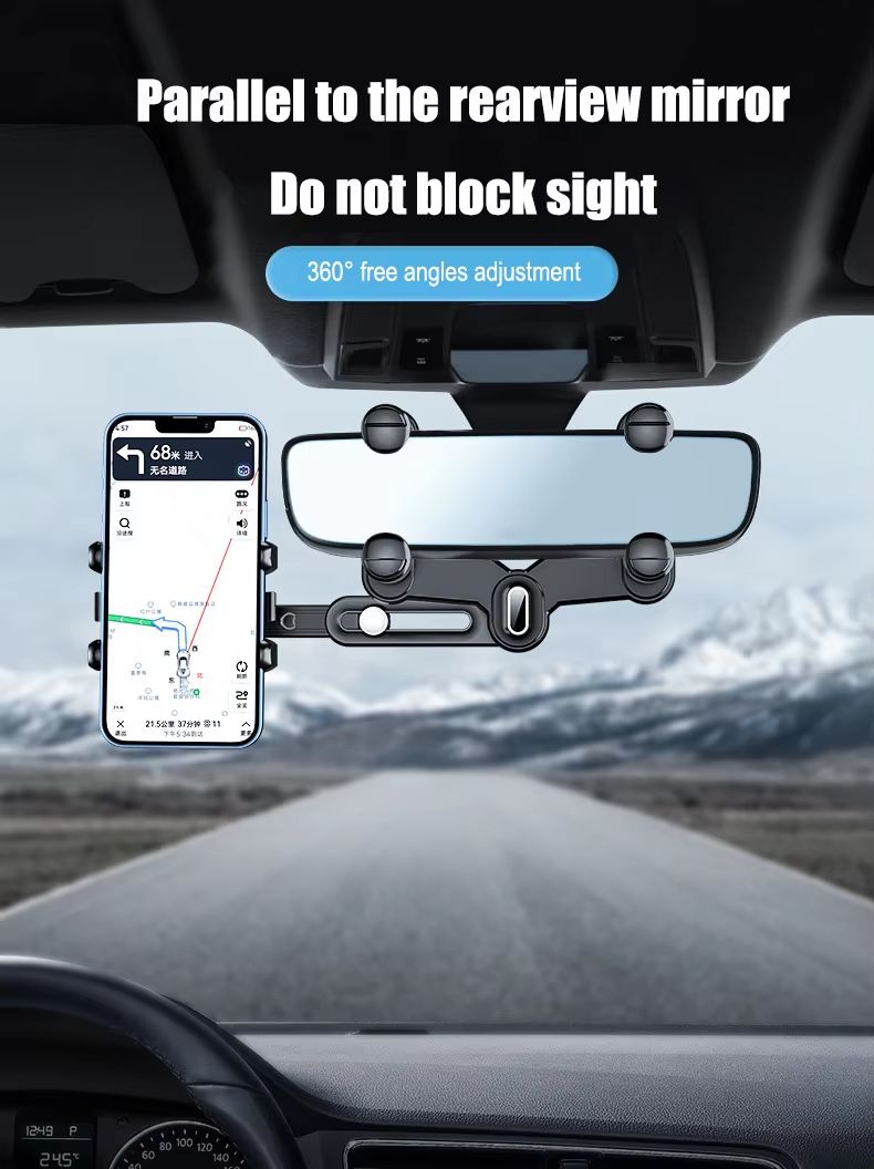 Suporte universal para celular com rotação de 360 ​​graus, retrátil e com movimento automático suporte para celular no espelho retrovisor do carro